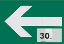 Markeringen for den enkelte rute sidder altid samme sted på skiltet så man selv på afstand kan se hvilke ruter skiltet gælder.